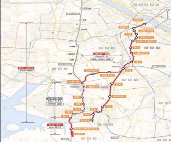 A2: 신안산선은 여의도에서 출발하여 광명, 시흥, 안산 등을 경유하는 Y자 형태의 노선으로, 총 연장 약 44.7km에 이릅니다. 주요 역으로는 여의도역, 광명역, 시흥시청역, 안산 중앙역 등이 있습니다.